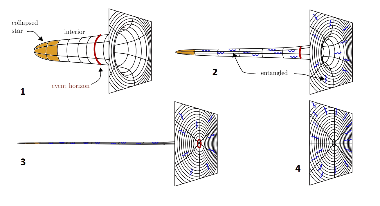 The new expression was reproduced several times in a series of articles published until recently in 2019. Immediately afterwards, as part of a joint study by researchers from the United States, including Netta Engelhardt, a calculation was published for the first time that takes into account the corrected expression for entropy and shows that in fact the paradox does not exist, at least within the example presented in the article . More examples were published soon after in a series of papers by Maldesna and his collaborators in 2020. The researchers showed that the Roe-Takingi entropy can be obtained even without assuming it. The method they used to calculate the entropy of radiation and black holes is called the "replication trick". This is a mathematical trick that, in simple words, calculates the entropy using a mathematical reproduction of the black hole whose replicas are connected by means of wormholes. In the end, it is not a model that describes reality and wormholes do not exist around the black hole. Still, it turns out that the trick works, the corrected entropy is revealed and the paradox disappears.